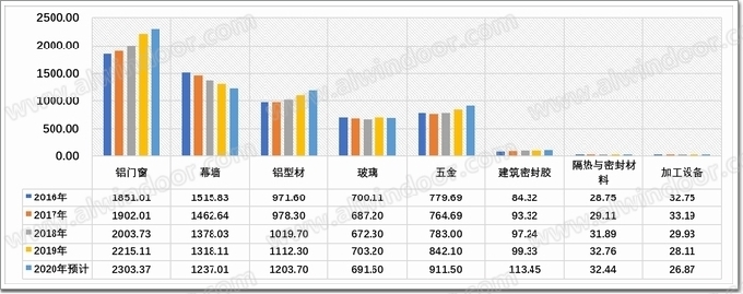 2016年-2020年鋁門窗幕墻產值分類匯總表