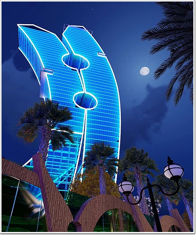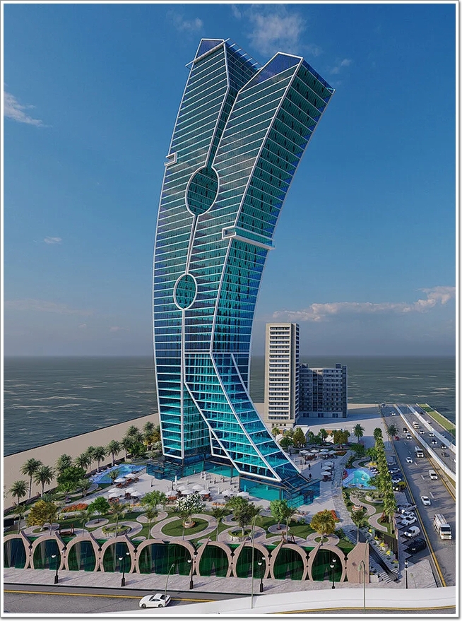“衣夾”塔由兩座異形塔樓組成,猶如兩個靈魂走到一起,形成“象征21世紀(jì)關(guān)于愛、和平和希望”的結(jié)合體。建筑的文化性隱喻,使其成為具有人文特征的藝術(shù)品。