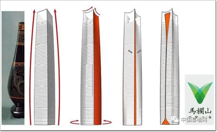 V形洞口既是特征性的建筑空間,也是結構構件(詞條“結構構件”由行業大百科提供)的的單元形狀,同時是幕墻系統的豎向受力構件(詞條“構件”由行業大百科提供)一部分,更是泛光照明的受光面——四種目標以一個成果達成,實現復雜項目中高效集約的目標。