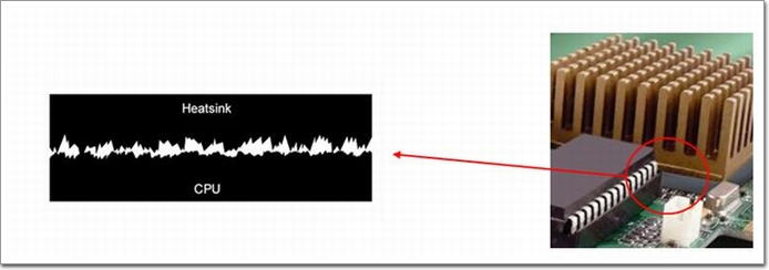 機械加工的金屬(詞條“金屬”由行業大百科提供)部件表面不可能完全光滑,其平整度取決于模具精度,且只能控制在有限的限度內。無論是同種材料還是兩種不同的材料,即使材料表面平整度很好或施加很大的扣合壓力,仍無法達到緊密接觸。從顯微鏡中可以看到處理器表面和熱沉底面的各種細小坑槽和起伏不平。這些表面瑕疵造成元器件和散熱片不能充分接觸,在界面間形成空隙。