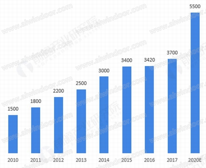 中國的幕墻行業(yè)實現(xiàn)了從無到有,從外資獨大到國內(nèi)企業(yè)主導(dǎo),從模仿引進到自主創(chuàng)新,跨越式的發(fā)展,到現(xiàn)如今,中國幕墻行業(yè)已取得巨大進步,研究數(shù)據(jù)顯示,2010年我國幕墻工程總產(chǎn)值已達1500多億元,2012年我國幕墻工程總產(chǎn)值突破2000億元。2014年我國幕墻工程總產(chǎn)值增長至3000億元。截止至到2017年我國幕墻工程總產(chǎn)值已達到了3700億元。根據(jù)《建筑裝飾行業(yè)“十三五”發(fā)展規(guī)劃綱要》之中的相關(guān)數(shù)據(jù)分析不難發(fā)現(xiàn),中國幕墻工程在2020年的總產(chǎn)值將會突破5000億元,年均增長速度在11%左右。面對如此超大規(guī)模的行業(yè),我們?nèi)匀恍枰粩嗟淖晕彝晟坪蛣?chuàng)新。