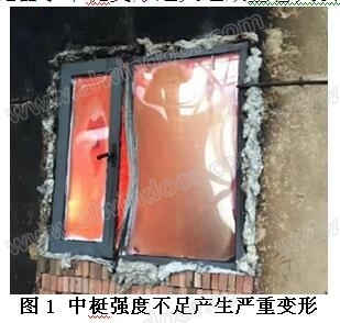 窗框架中,中梃為受力最為集中的部位,是窗框架系統中最為薄弱的環節,試驗失敗的情況多發生在中梃部位。可采取增加斷面尺寸或者在型材腔體內(主要是中梃型材)穿入增強型鋼的方法提高其抗變形能力和連接強度,避免由于中梃變形過大造成整窗失去耐火完整性。