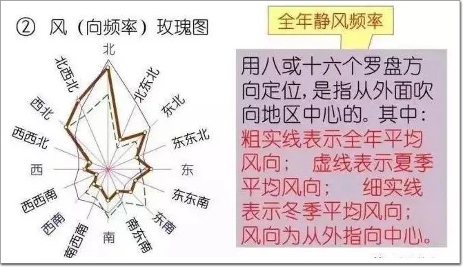 用來表示該地區(qū)常年的風(fēng)向頻率和房屋的朝向。