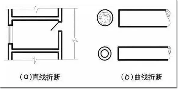 曲線折斷:對(duì)圓形構(gòu)件的圖形折斷,其折斷符號(hào)為曲線。