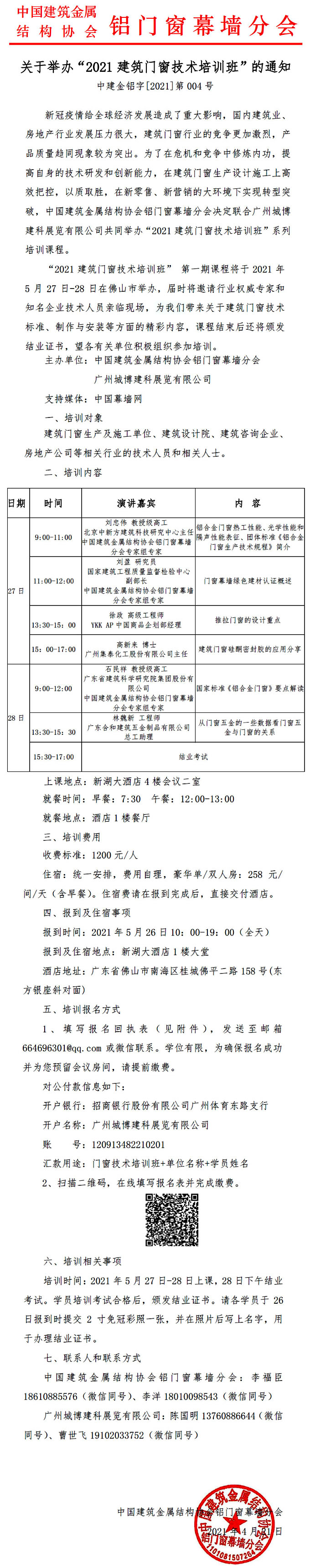 關于舉辦“2021建筑門窗技術培訓班”的通知