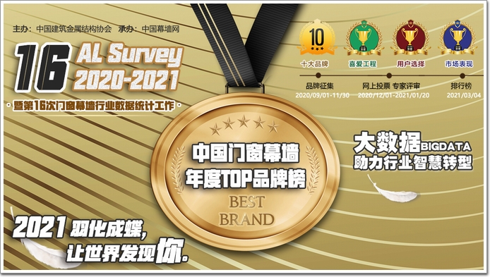 由中國建筑金屬結構協會CCMSA主辦,中國幕墻網ALwindoor.com承辦——第16屆AL-Survey2020-2021年度大型讀者調查活動暨“我最喜愛幕墻工程”評選活動(簡稱:AL-Survey)頒獎儀式,2021年3月在廣州廣交會威斯汀酒店隆重舉行。