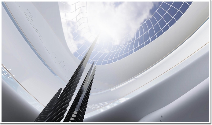用當代美學(xué)的表達,連接了過去和現(xiàn)在|中國國際絲路中心的設(shè)計在建筑形體上,表現(xiàn)了對其所在的特殊地理位置的理解,以及對西安當?shù)匚幕瘹v史的傳承。方案通過豎向線條的強調(diào),突顯了古人向往天與地之間連接的表達。在立面細部上,通過結(jié)構(gòu)的豐富變化,在產(chǎn)生了兵馬俑鎧甲形象的同時,也表達了絲綢之路上絲綢的柔韌質(zhì)感。