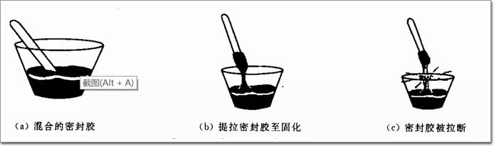 2、拉斷測試:測定施工可操作時間及A、B組分的混合比例是否正確。將混合后的雙組分密封膠擠取約2/3-3/4紙杯密封膠,將木棒插人紙杯中心,定期從紙杯中提起木棒至密封膠被拉扯斷。注入密封膠到拉斷的時間,即為密封膠的拉斷時間。