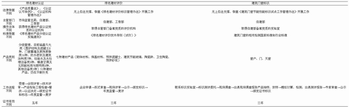 表4.1 綠色建材認證與性能標識、評價區(qū)別