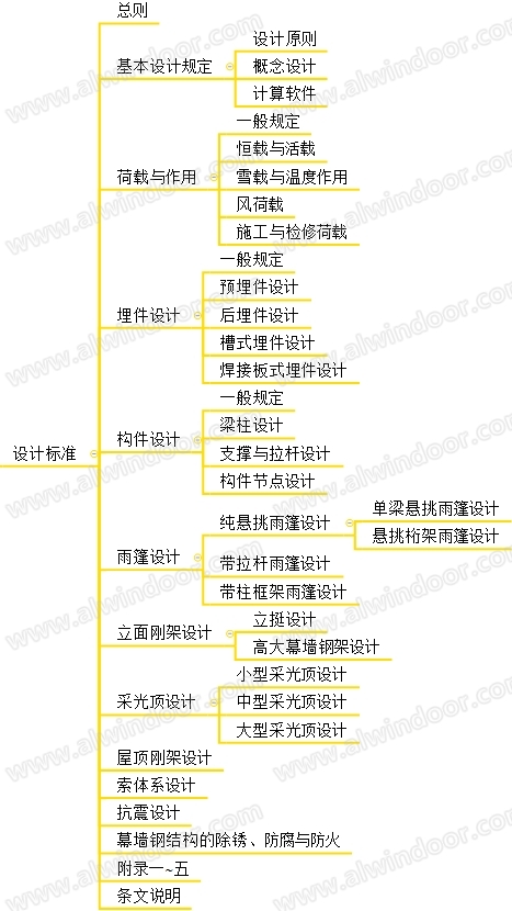 圖2 幕墻鋼結(jié)構(gòu)設(shè)計(jì)標(biāo)準(zhǔn)內(nèi)容總覽