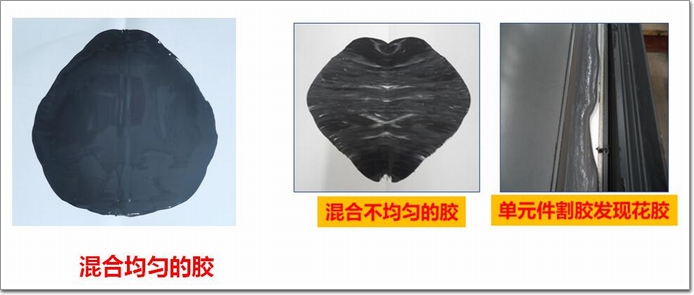 2. 打開紙檢查膠樣,混合均勻的膠應無異色條紋,如果膠出現異色條紋,則表明混膠不均勻,應查找原因,解決該問題后才能使用。
