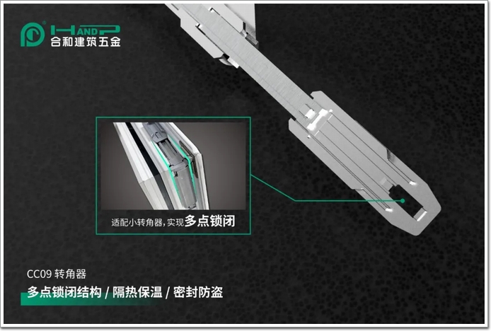 • 適配小轉角器實現多點鎖閉,提高整窗的密封性和抗風壓性。