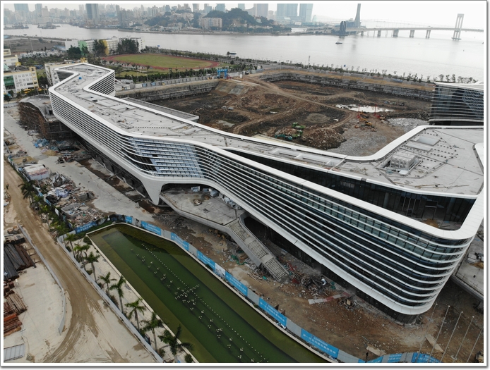 本次獲獎工程——“珠海國際會展中心”,項目位于中國珠江口西岸,為整個會展組團項目的收官之作,也是中央十字門商務區的重點建設項目,是珠三角功能完善、配套齊全、設施先進的專業場館之一,推動粵港澳大灣區經濟建設發揮巨大紐帶作用,“城市綢帶”因此聞名遐邇。