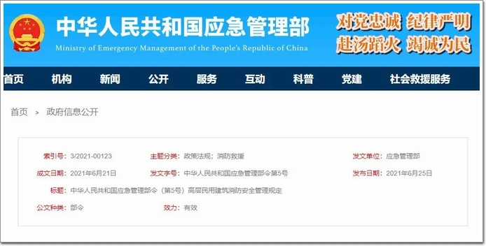 導語:近日,中華人民共和國應(yīng)急管理部發(fā)布第5號令,公布《高層民用建筑消防安全管理規(guī)定》(下稱“《規(guī)定》”),自2021年8月1日起施行。
