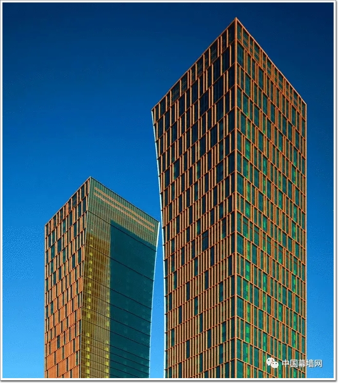 僅管是2006年項目,但整個建筑的設計中,ARQ建筑事務所一直秉持著環保、節能、可持續發展的超前設計理念。雙塔之間的立面則采用了相對簡潔的立面設計,并在其中鑲嵌了金色的節點。這些節點在晚上會閃閃發光,讓人們回想起過去的船廠。