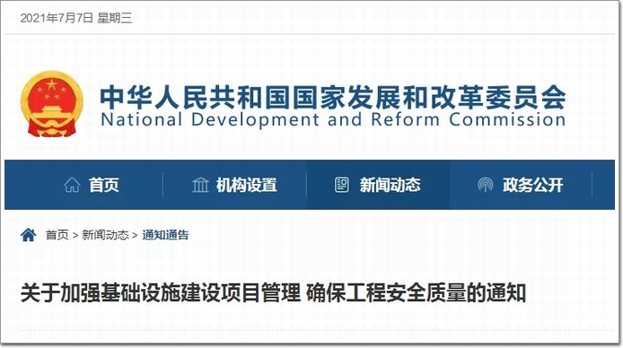 近日,發(fā)改委官網(wǎng)發(fā)布《加強基礎(chǔ)設(shè)施建設(shè)項目管理 確保工程安全質(zhì)量的通知》重點如下: