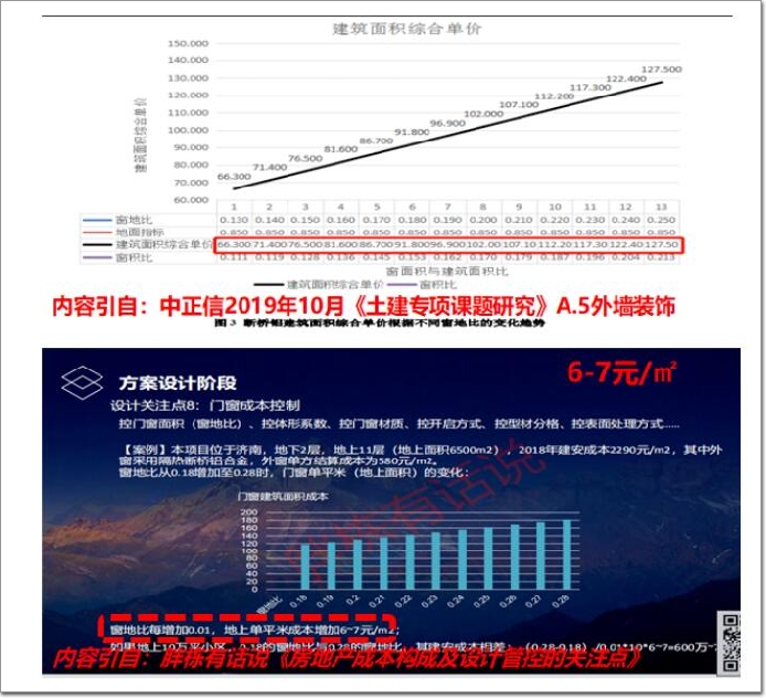 窗地比每增加0.01,則折合建面增加費(fèi)用為4-7元/㎡不等。