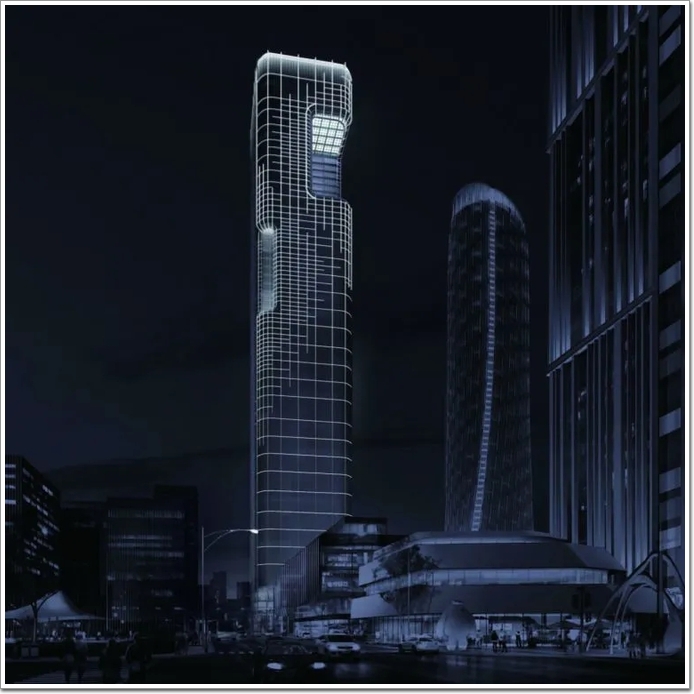 2021年5月25月,ARQ建筑事務所公布的南京江北新金融7號地塊,是這座混合功能高達300米的超高層公共建筑——城市燈塔。300米高的塔樓兼具辦公和酒店的功能,包含奢華五星酒店以及10萬平方米的辦公空間,總用地面積12,252.74平米,總建筑面積140,906平米。