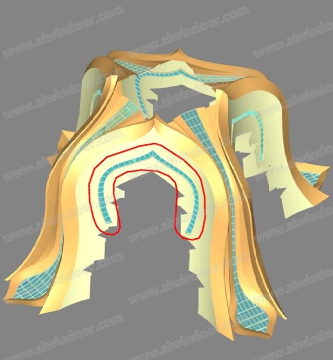 經過分析,玻璃存在翹曲值,為雙曲面玻璃,天窗四周的型材經過分析,為雙曲型材,需要雙向拉彎,很難加工。