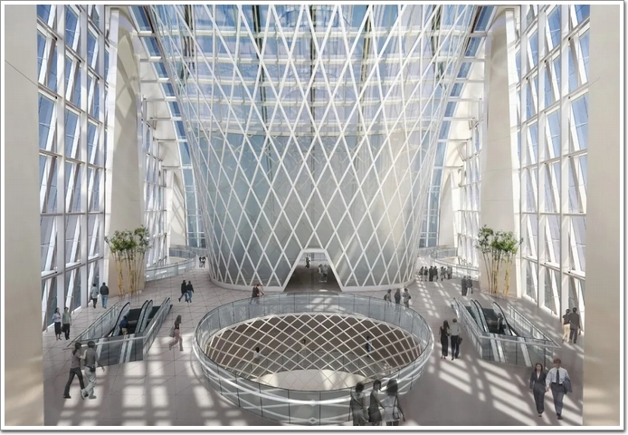 對于日人流量 8000 ~ 10000+ 的 500米以上超塔而言,多層地面及地下大堂、合理的豎向功能分區、空中大堂、高速直達電梯、分區電梯、高效的核心筒設計,都是這個項目的標配,核心筒是建筑的大動脈,高效的核心筒設計,不僅增加建筑得房率,同時也是建筑的脊椎骨,提供結構剛性。