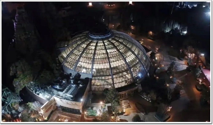 由江河幕墻北方大區(qū)負責施工的侏羅紀世界中的百鳥園穹頂幕墻,是北京環(huán)球度假區(qū)七大主題園區(qū)中幕墻面積最大、施工難度最高的幕墻工程。建筑的球形外觀在園區(qū)中獨具魅力,讓人仿佛置身于電影中的世界。