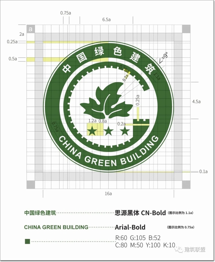 綠色建筑標識由牡丹花葉、長城、星級和中國綠色建筑中英文構成,體現中國綠色建筑最大限度實現人與自然和諧共生。