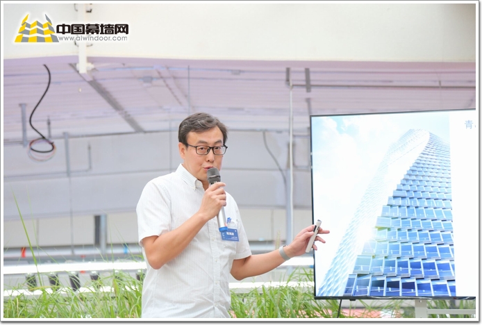 楊總的演講內容來自于青島的網紅打卡地,在331米高處的高空玻璃觀景房,與北玻聯合營造的一個全透明盒子,能夠真正體驗360度山海城景觀,平流霧之上感受天地遨游。最出彩的是“可變色調光玻璃”的應用,不需要窗簾即實現建筑的自動調光。
