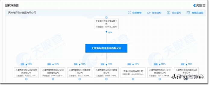 通過下面股權結構圖可知,天津海河設計集團有限公司由天津國興資本運營有限公司出資成立,擁有天津市政工程設計研究總院有限公司、天津市建筑設計研究院有限公司、天津市城市規劃設計研究總院有限公司、天津市測繪院有限公司、天津市勘察設計院集團有限公司、天津市水務規劃勘測設計有限公司和天津市園林規劃設計研究總院有限公司等七家設計企業。