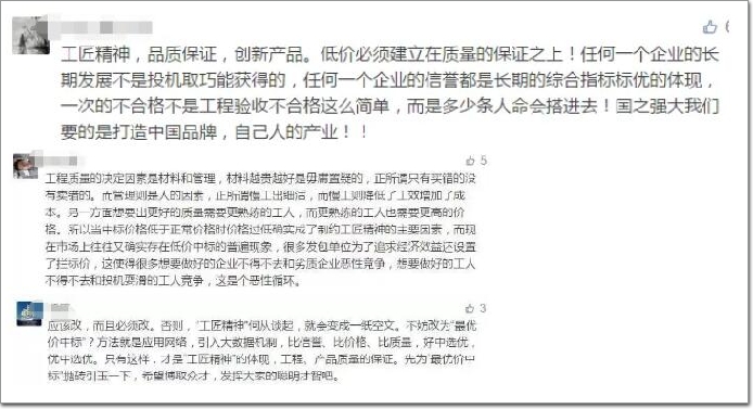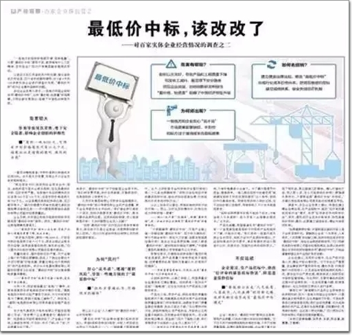 《人民日報》發文《質量應是企業立身之本(一線視角)》,首次詬病最低價中標。