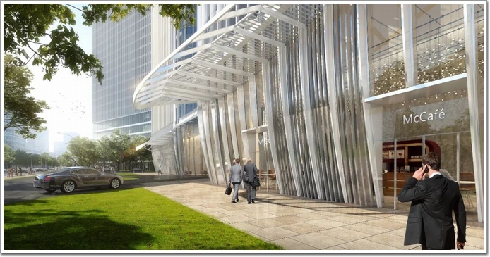 建筑挺拔的外觀造型,結合垂直連通的核心筒(詞條“核心筒”由行業大百科提供),酷似“蓮藕”的多孔相通,以其中通外直——寓意君子多方,多孔且通達寓意“財源廣進”。