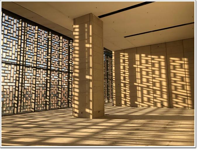介紹完建筑“幕”后的故事,我們?cè)倭幕氐浇ㄖ黧w——中國工藝美術(shù)館這座“漂浮在空中的百寶閣”,設(shè)計(jì)立意以“中軸”進(jìn)行構(gòu)思,其表面從太和殿的重檐廡殿頂中,抽象提取琉璃瓦的暖黃色,通過利用現(xiàn)代的技術(shù)和材料以簡潔的建筑手法,結(jié)合工藝美術(shù)中“百寶閣”的紋樣,表現(xiàn)外立面在一種均質(zhì)完整表面中色彩、光澤與層次的細(xì)微而豐富的變化。
