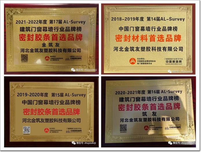2018-2022年間連續獲得由中國金屬(詞條“金屬”由行業大百科提供)結構協會,鋁門窗專業委員會,中國幕墻網,聯合頒發的業內《密封膠條首選推薦品牌》。