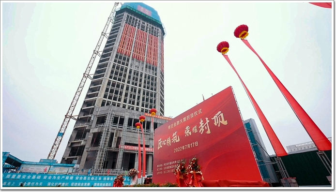 2022年7月17日上午10時,隨著塔樓33層頂板(詞條“頂板”由行業大百科提供)混凝土澆筑完成,棗莊金融大廈項目喜封金頂,項目計劃將于明年7月完工交付。