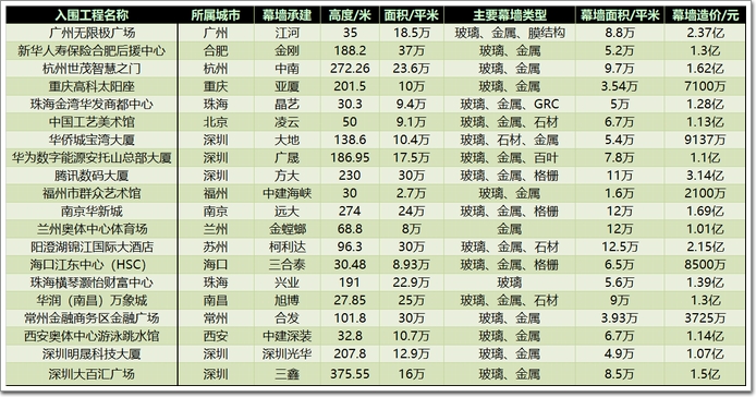 以下是入圍的幕墻企業及工程名單: