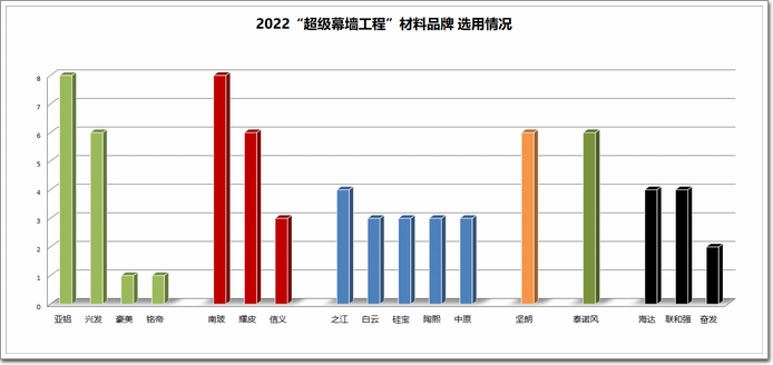 2022入圍工程的“材料品牌”選用情況