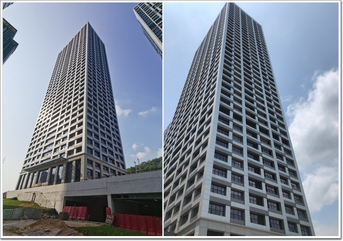 由于是改造升級項目,深圳廣晟在項目施工過程中需拆除原A棟4層,及以上所有鋁板幕墻及部分龍骨,3層及以下所有幕墻、門窗及雨棚等。同時,還需拆除原C棟2層,及以上所有鋁板幕墻及部分龍骨,1層及以下所有幕墻、門窗及雨棚等。接下來,再新建光伏玻璃幕墻、鋁板幕墻(及穿孔鋁板)、梭形百葉、鋁板及玻璃雨棚、電動門及地彈門等共計11萬余平方米。