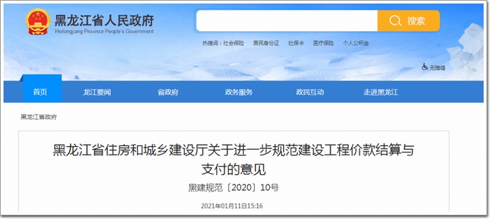 2020年11月12日,黑龍江省住房和城鄉(xiāng)建設(shè)廳發(fā)布《關(guān)于進(jìn)一步規(guī)范建設(shè)工程價(jià)款結(jié)算與支付的意見》。