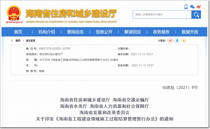 10月22日,湖南省住建廳聯(lián)合省財(cái)政廳發(fā)布《關(guān)于在房屋建筑和市政基礎(chǔ)設(shè)施工程中推行施工過程結(jié)算的實(shí)施意見》,自2022年11月1日起施行。