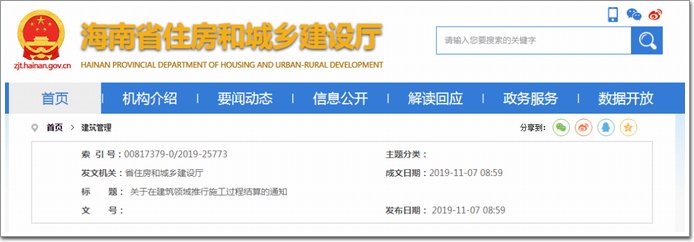 2019年6月13日,廣東省住建廳印發(fā)通知,推進(jìn)全省房屋建筑和市政基礎(chǔ)設(shè)施工程施工過程結(jié)算。