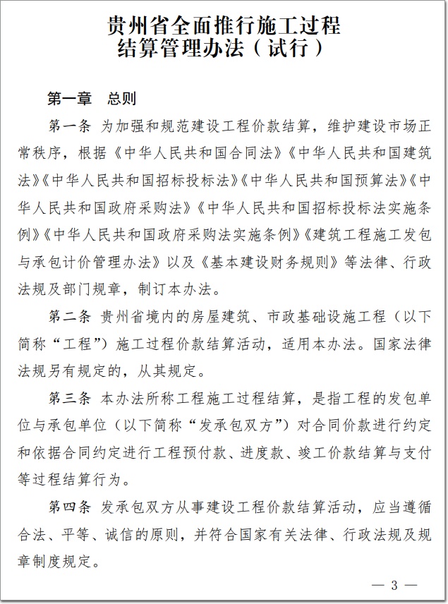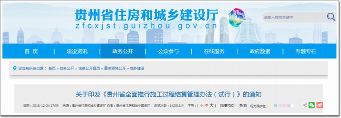 2018年12月,貴州省住建廳印發(fā)《貴州省全面推行施工過程結(jié)算管理辦法(試行)》。