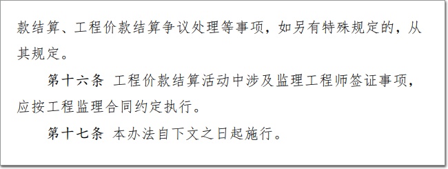 7、即日起執(zhí)行。之前已招標(biāo)和已簽合同的工程可由發(fā)承包雙方協(xié)商簽訂補(bǔ)充協(xié)議,完善相關(guān)施工過程結(jié)算的內(nèi)容和手續(xù)。