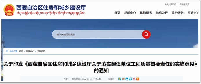 2022年3月31日,西藏住建廳關(guān)于印發(fā)《西藏自治區(qū)住房和城鄉(xiāng)建設(shè)廳關(guān)于落實(shí)建設(shè)單位工程質(zhì)量首要責(zé)任的實(shí)施意見》的通知,提出: