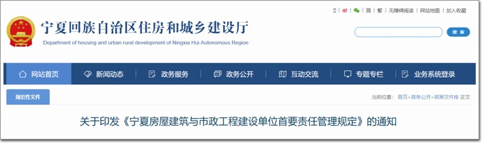 3月25日,寧夏自治區(qū)住建廳發(fā)布《關(guān)于印發(fā)<寧夏房屋建筑與市政工程建設(shè)單位首要責(zé)任管理規(guī)定>的通知》,自2022年4月21日起施行。