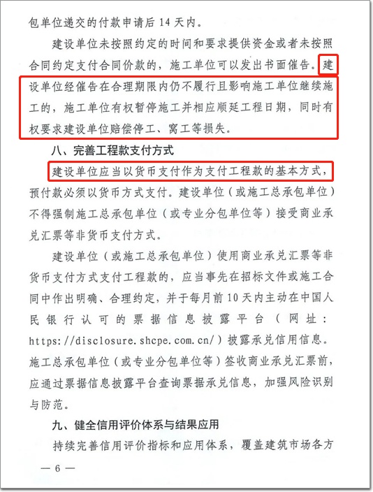 2、建設(shè)單位(或施工總承包單位)不得強(qiáng)制施工總承包單位(或?qū)I(yè)分包單位等)接受商業(yè)承兌匯票等非貨幣支付方式。