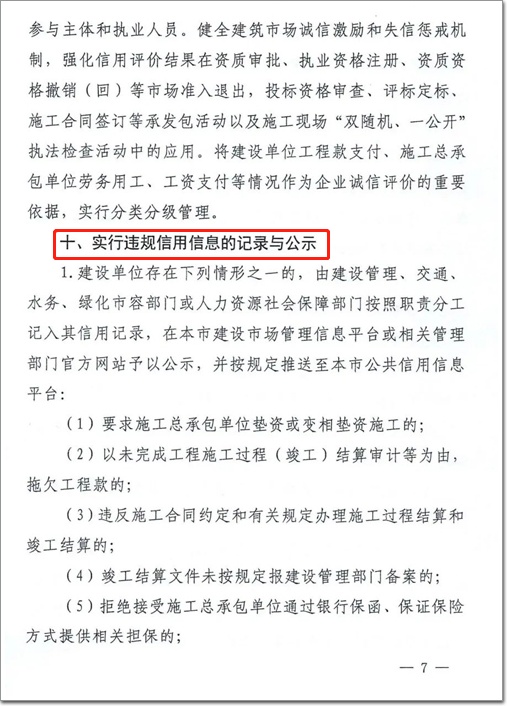 6、實(shí)施施工過程結(jié)算的工程,建設(shè)單位未按合同約定及本辦法規(guī)定支付施工過程結(jié)算款的,作為不良行為記入建筑市場信用檔案,在“湖北省建筑市場監(jiān)督與誠信一體化平臺(tái)”予以公布,公布時(shí)限按有關(guān)規(guī)定執(zhí)行。