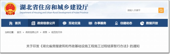 2022年6月27日,湖北省住建廳發(fā)布《關(guān)于印發(fā)<湖北省房屋建筑和市政基礎(chǔ)設(shè)施工程施工過程結(jié)算暫行辦法>的通知》。