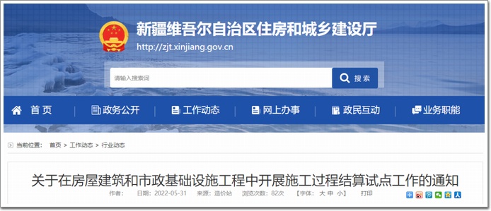 5月31日,新疆住建廳發(fā)布《關(guān)于在房屋建筑和市政基礎(chǔ)設(shè)施工程中開展施工過程結(jié)算試點(diǎn)工作的通知》。