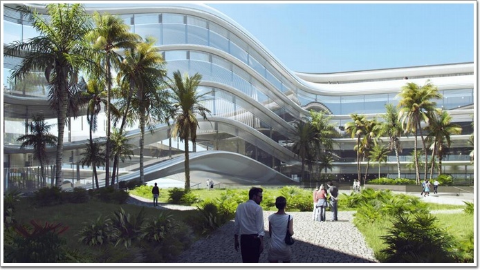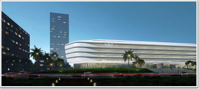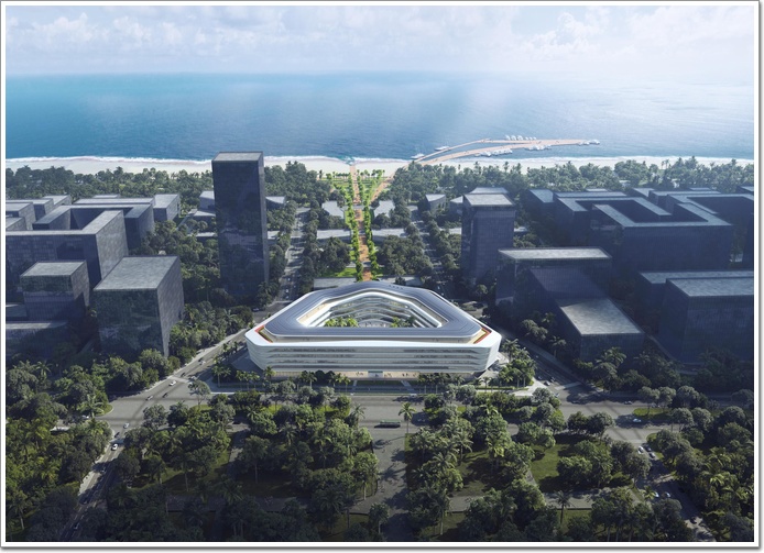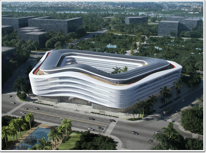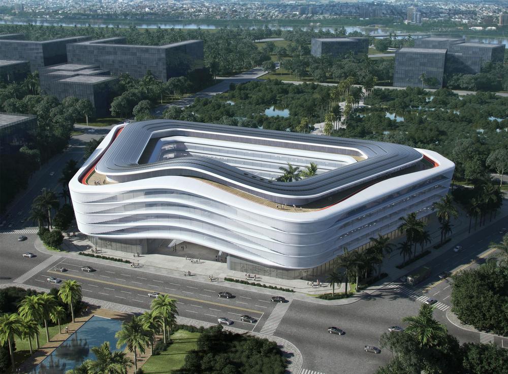 雙曲幕墻,編織出南海邊上靈動的“飄帶”︱江東中心HSC是海口市江東新區的地標建筑,建成后將作為海口江東新區政務中心和辦事大廳使用。