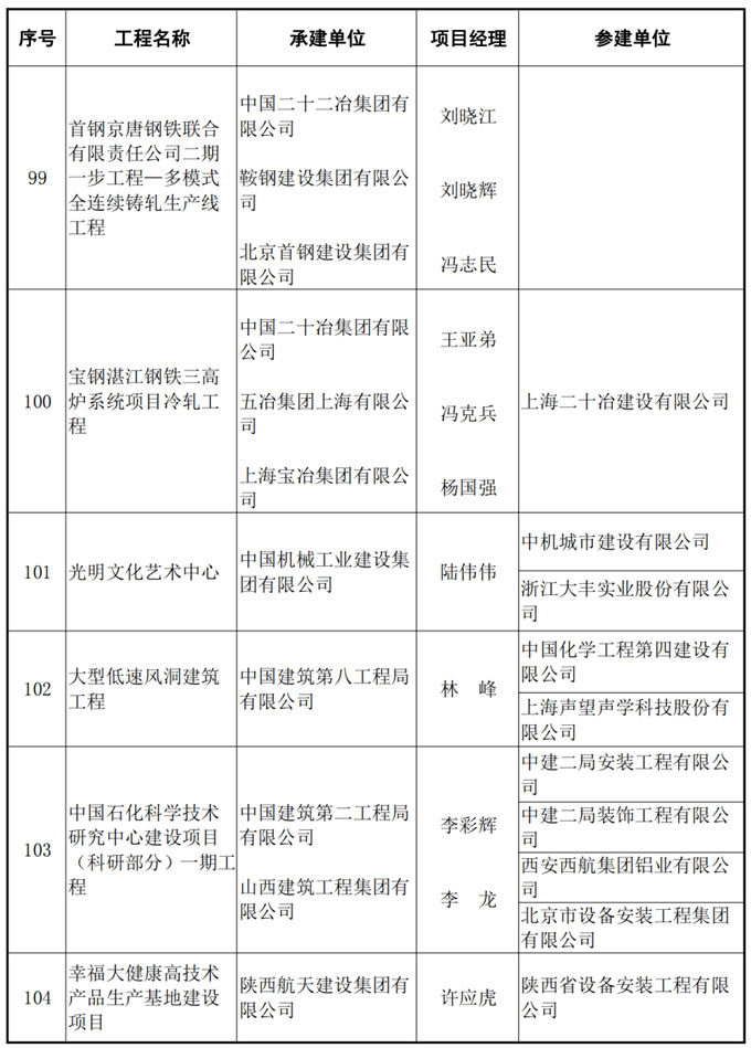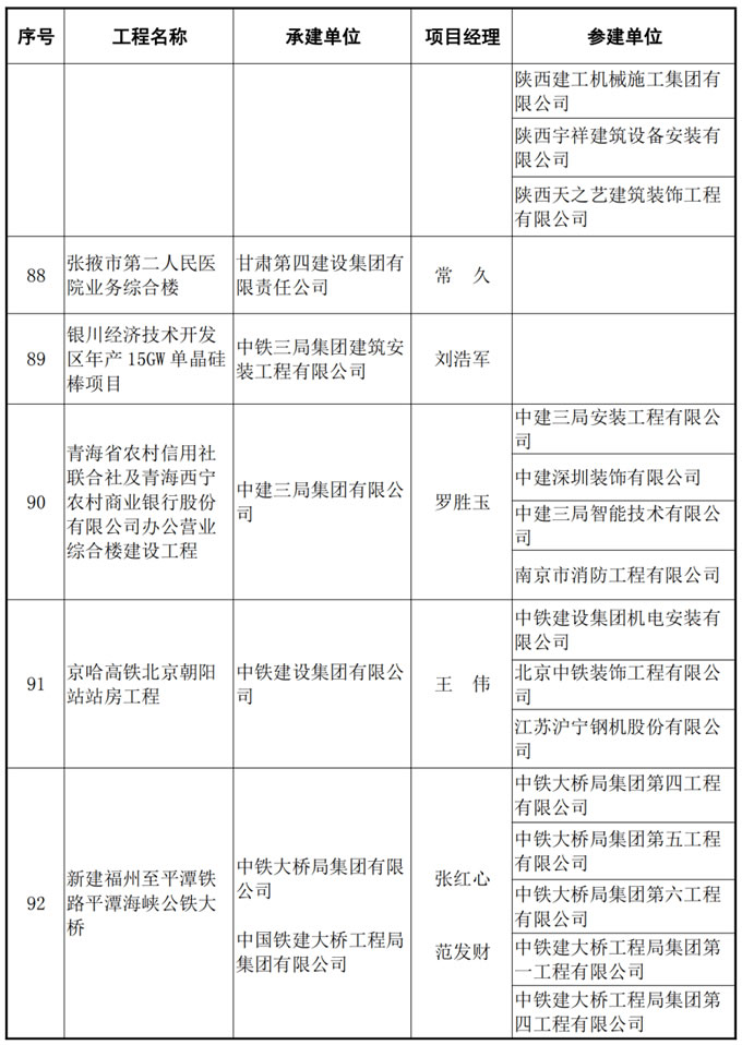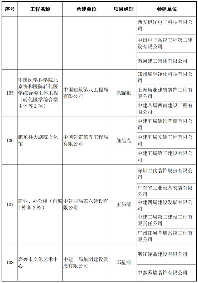 2022~2023 年度第一批中國建設工程魯班獎(國家優質工程)入選名單