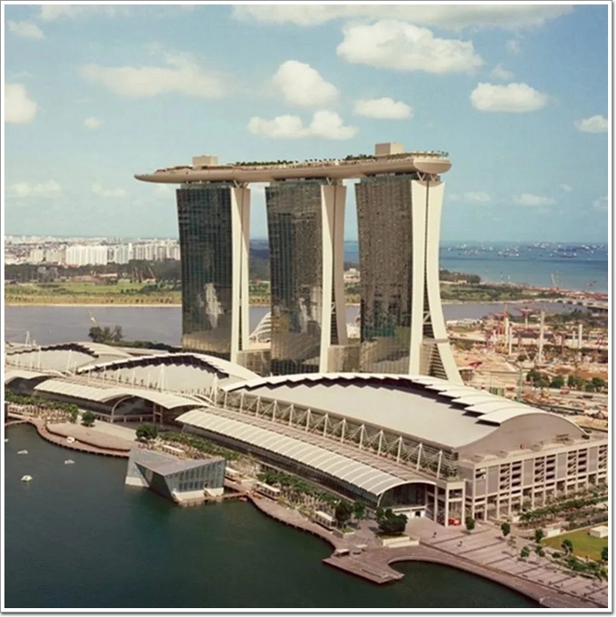 新加坡濱海灣金沙酒店,是摩天大樓通過天橋連接的最著名的例子之一,薩菲迪工作室(Safdie Architect)將三座塔樓與340米長的天橋公園連接起來。